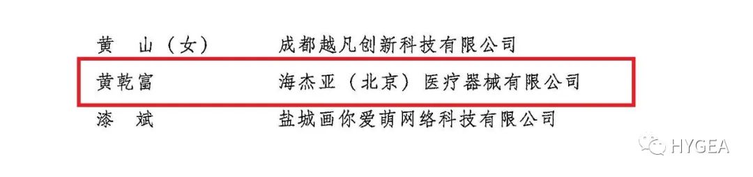近日,由共青團中央、人力資源社會保障部聯合開展的“中國青年創業獎”評選最終揭曉,海杰亞(北京)醫療器械有限公司董事長黃乾富被授予“中國青年創業獎”稱號。